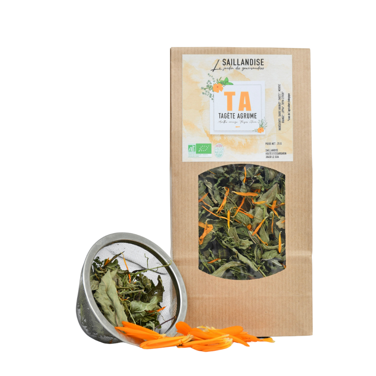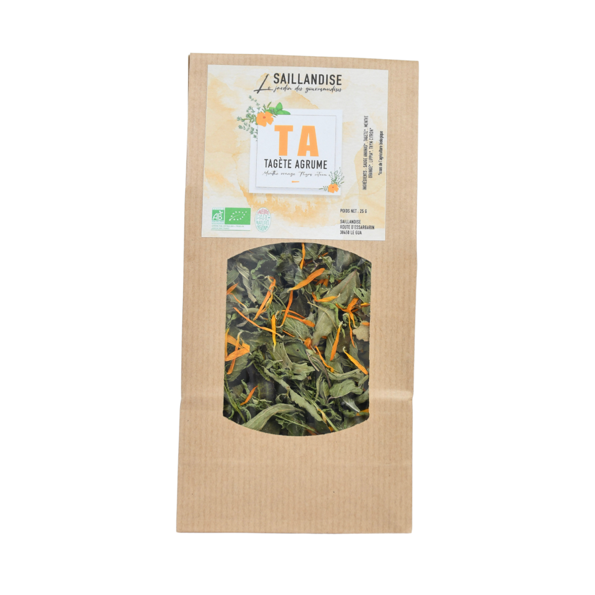 Infusion composée de Sauge Ananas, Tagète agrume, Menthe orange, Stevia et Thym citron.